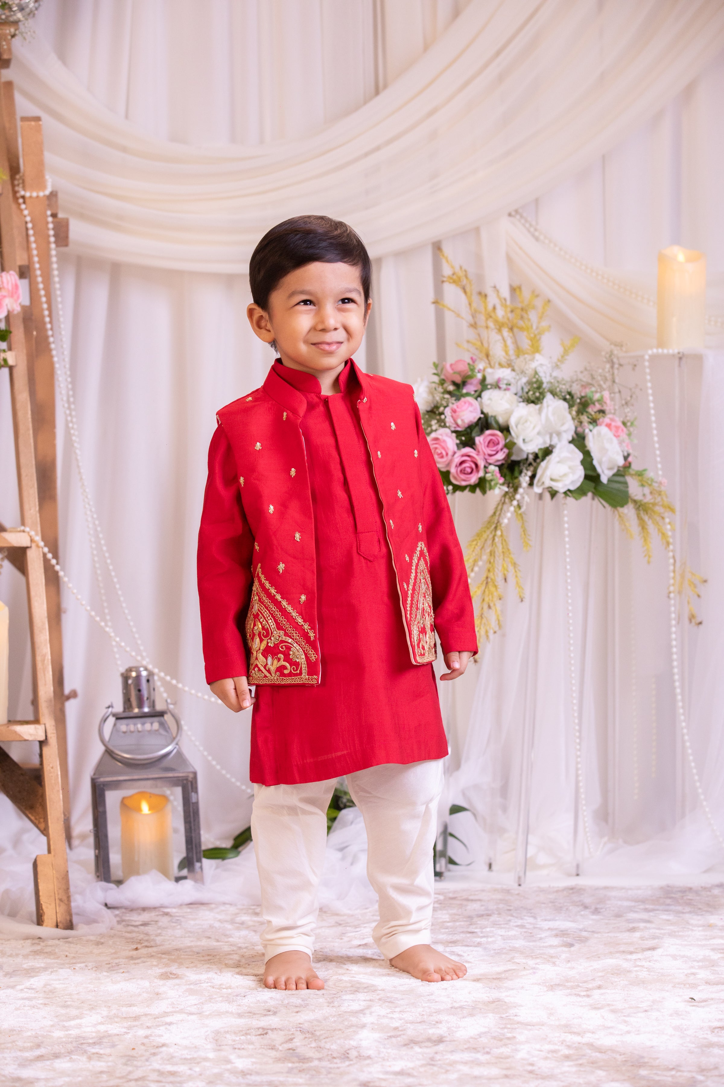 • No. Of Components: 3 piece (Kurta, Churidar, Nehru Jacket)
