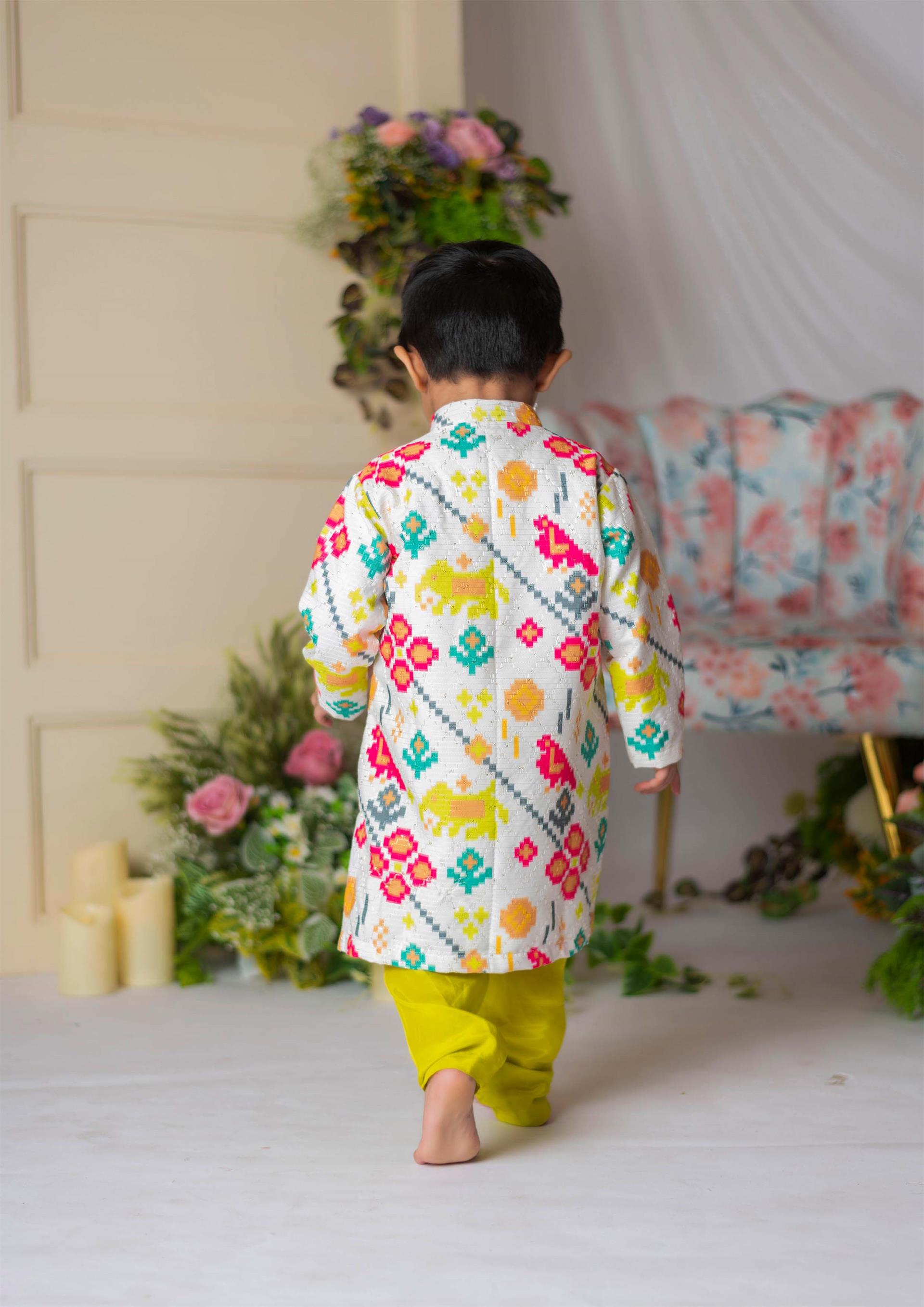• Color: White Ikkat Print, Green